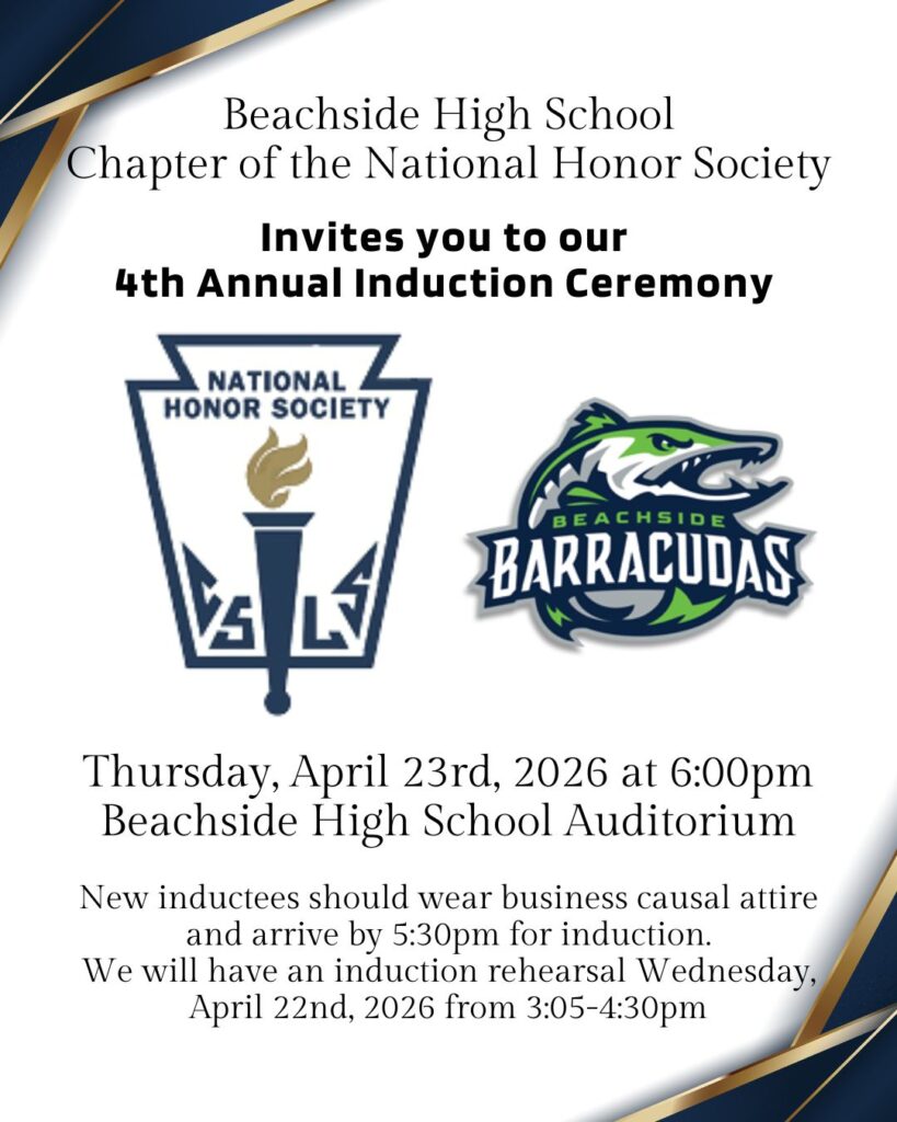 - NHS Induction Ceremony on April 23, 2026 6:00 pm