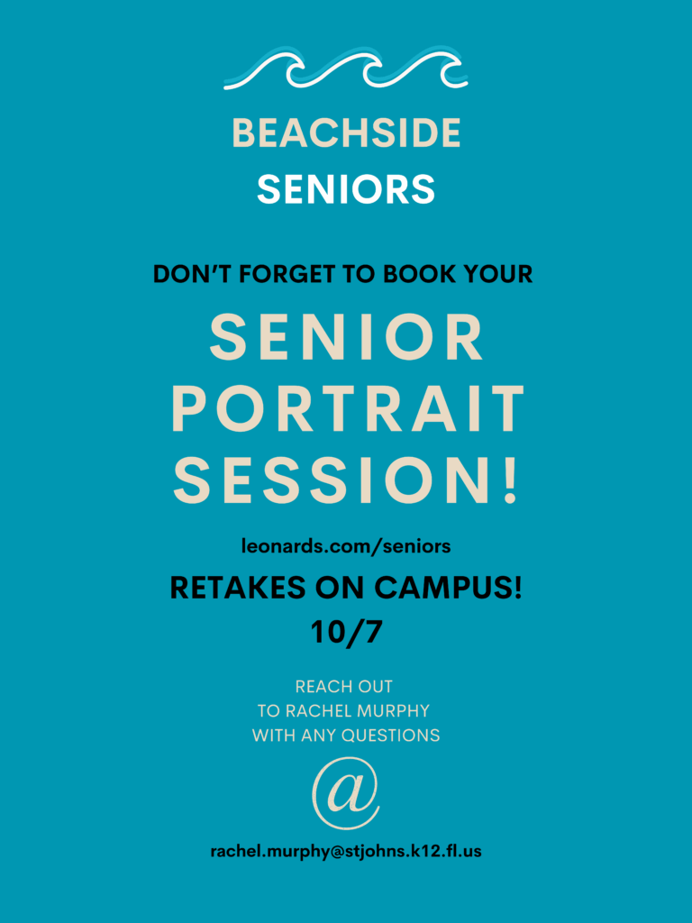 Please be aware the Photographers will be ready around 8:45 am. If you are able, please come get your photo taken before school starts!