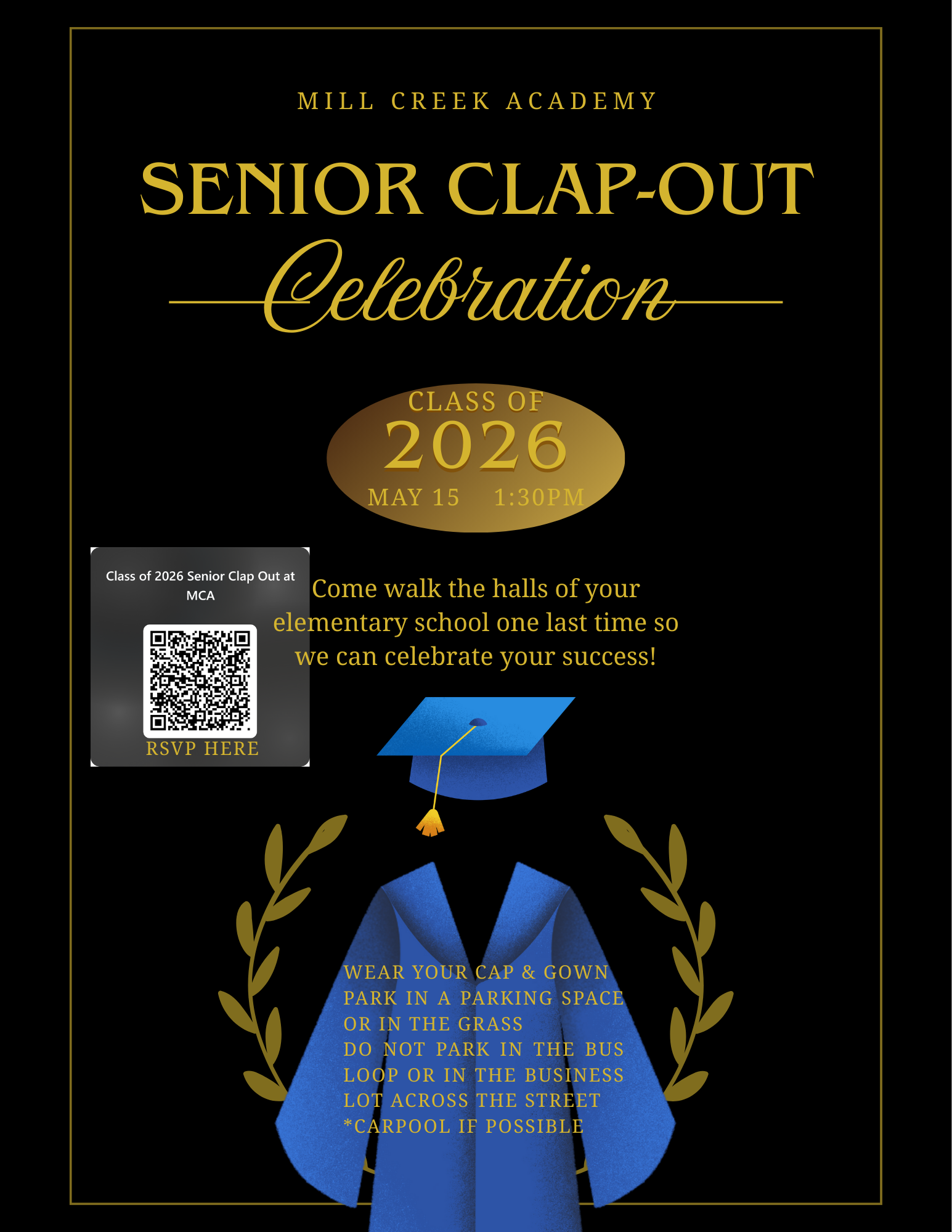 Elementary School “Clap Outs” – Seniors should wear their cap & gown to this event