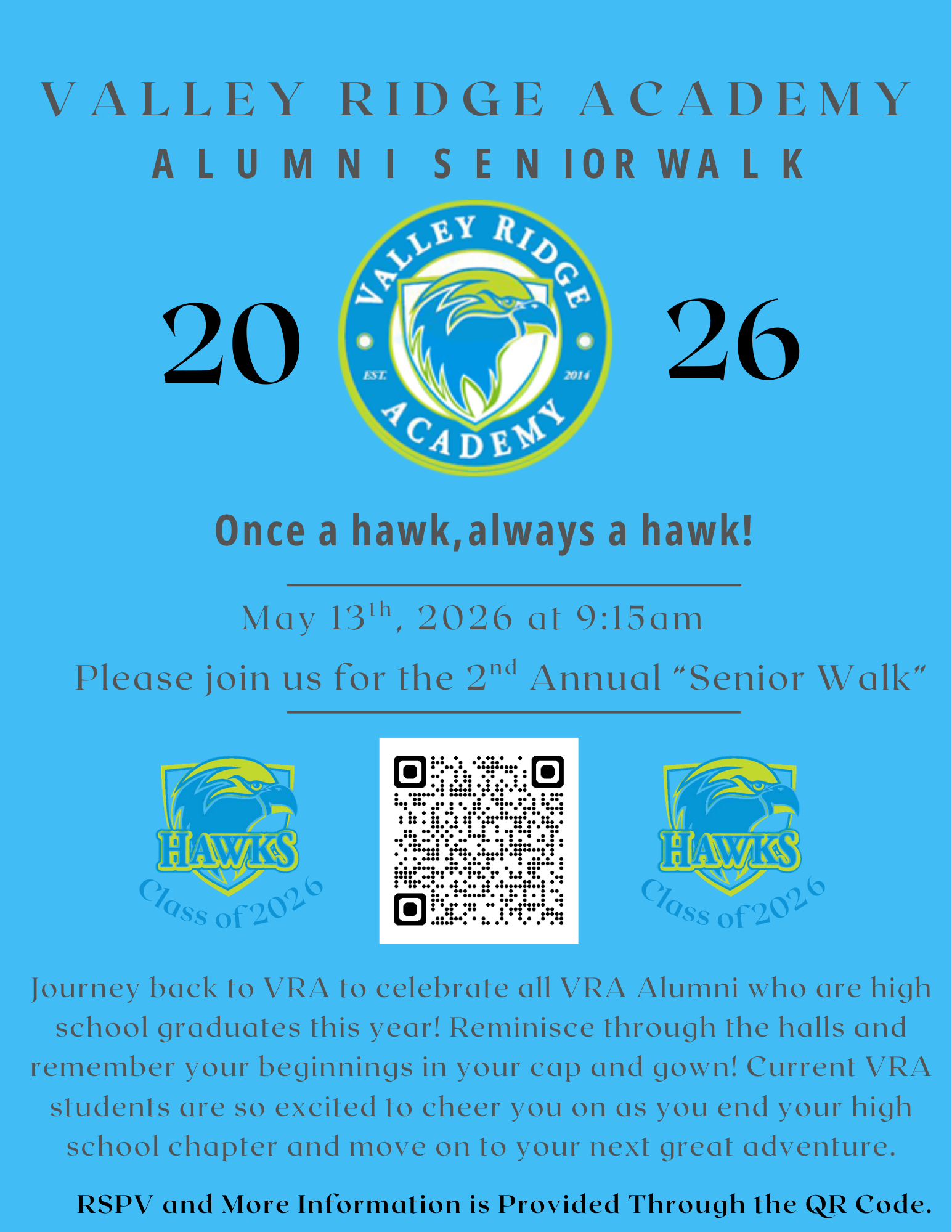 - Valley Ridge Academy – May 13 at 9:15 am. Click HERE for all information and to RSVP